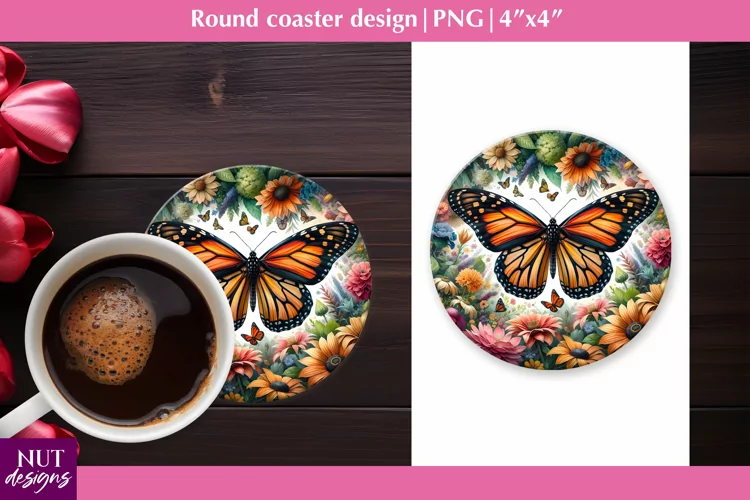 Spring coaster Floral coasters Butterfly coaster design example image 1
