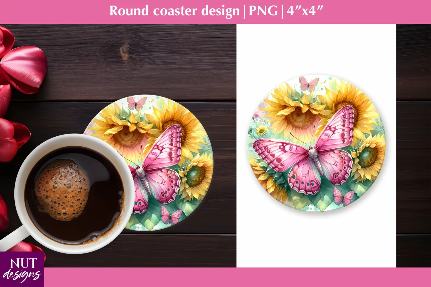 Spring coaster Floral coasters Butterfly coaster design example image 1