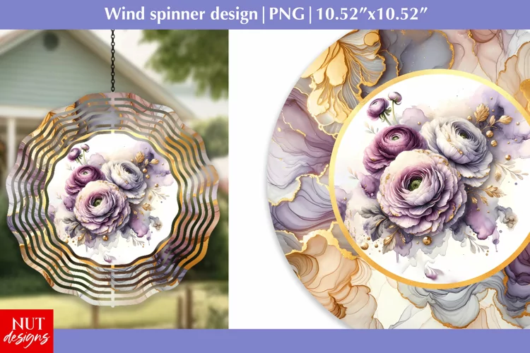Watercolor Flowers Ranunculus Spring Sublimation Flowers Sublimation Wind Spinner Wind Spinner Sublimation Floral Wind Spinner Flowers Wind Spinner Spring Wind Spinner Spring Round Design