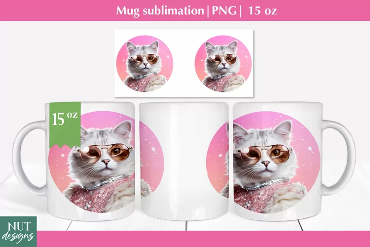 Funny Cat mug wrap, Pink mug sublimation, mug 15oz