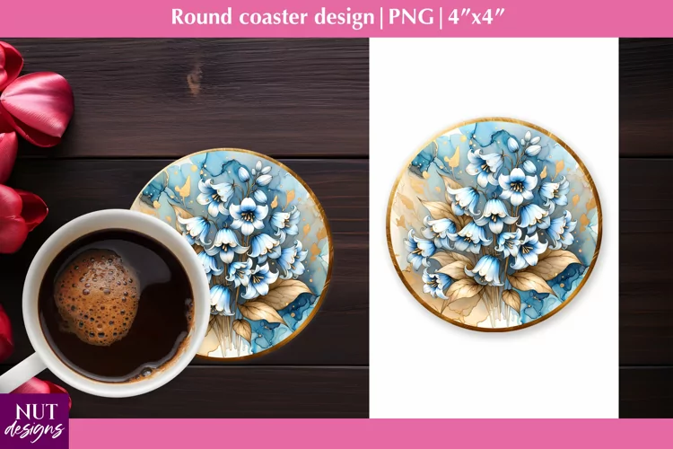 Bluebells flowers coaster Floral coaster PNG Spring coaster example image 1