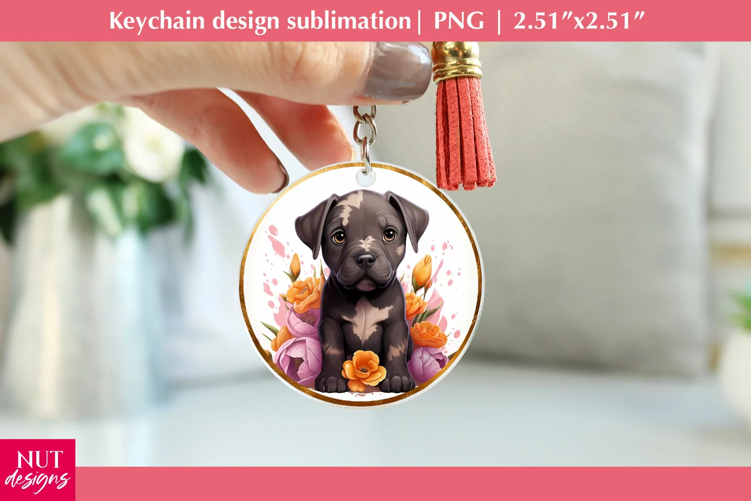 Baby dog keychain PNG, Floral Dog Mom keychain sublimation