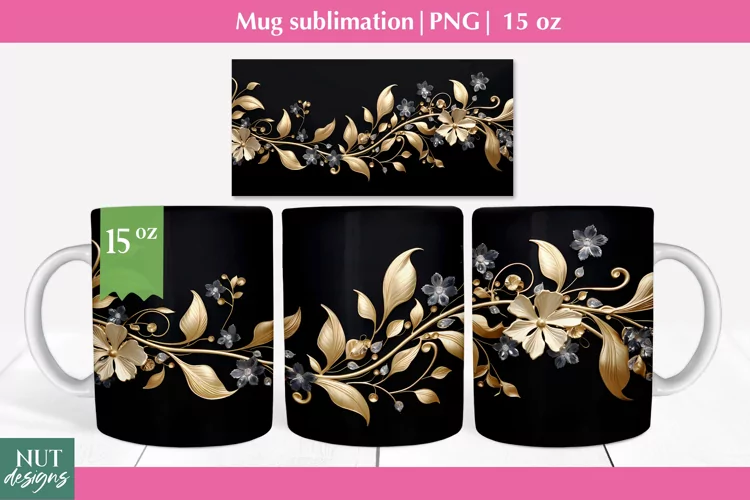 Infuse your daily coffee ritual with elegance with our Golden Leaves Floral Mug Wrap, designed for a 15oz mug. This elegant mug design features shimmering golden leaves and metal flowers, bringing a touch of sophistication to your morning routine. Crafted with the latest in sublimation printing technology, each mug is a work of art, perfect as a Mother's Day gift or a luxurious addition to your own collection. The cup wrap sublimation ensures the design wraps seamlessly around the 15oz mug, creating a stunning visual experience from every angle. Elevate your beverage experience with this exquisite sublimation design, blending functionality with unmatched style.