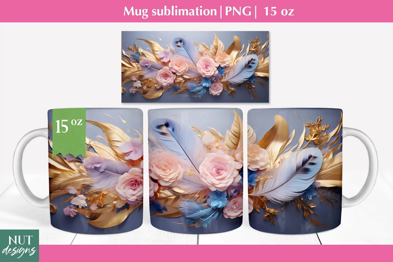 Infuse your daily coffee ritual with elegance with our Golden Leaves Floral Mug Wrap, designed for a 15oz mug. This elegant mug design features shimmering golden leaves and metal flowers, bringing a touch of sophistication to your morning routine. Crafted with the latest in sublimation printing technology, each mug is a work of art, perfect as a Mother's Day gift or a luxurious addition to your own collection. The cup wrap sublimation ensures the design wraps seamlessly around the 15oz mug, creating a stunning visual experience from every angle. Elevate your beverage experience with this exquisite sublimation design, blending functionality with unmatched style.