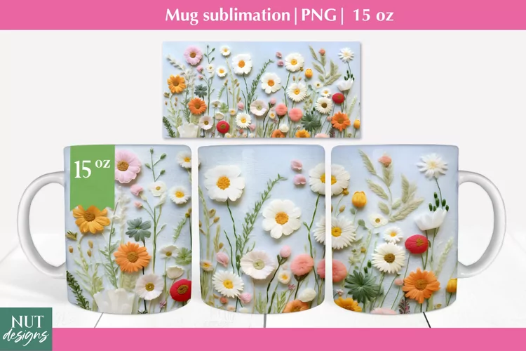 Similar Design Products to Felted 3d mug wrap, Floral mug sublimation, 15oz Mug wrap