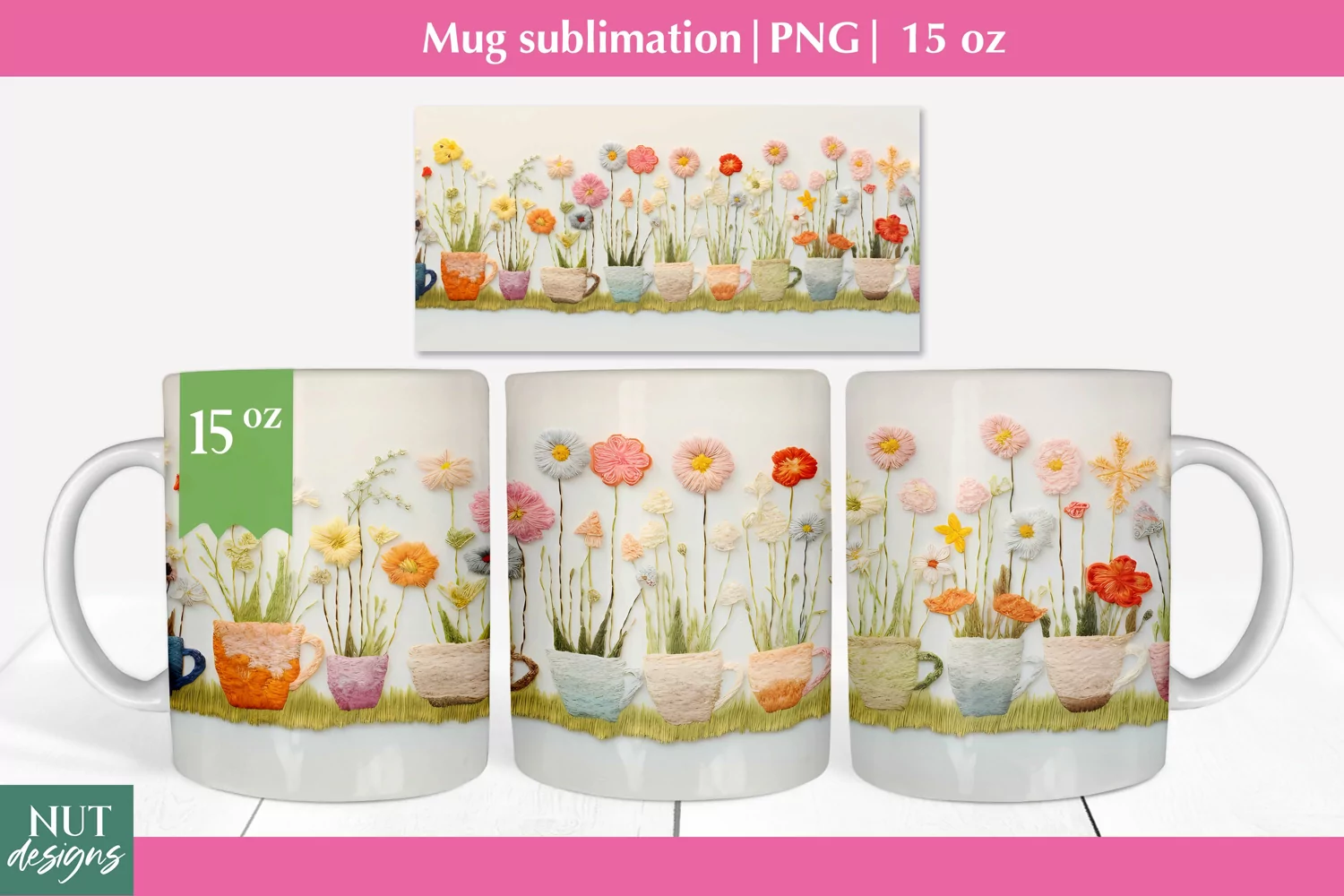 Similar Design Products to Felted 3d mug wrap, Floral mug sublimation, 15oz Mug wrap