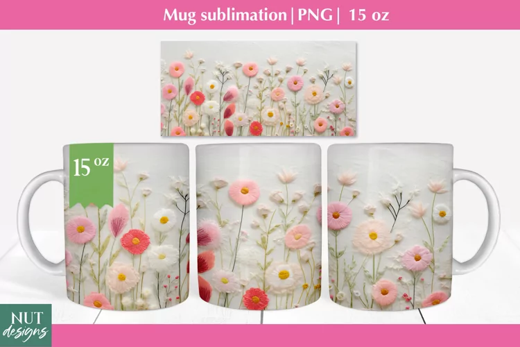 Similar Design Products to Felted 3d mug wrap, Floral mug sublimation, 15oz Mug wrap