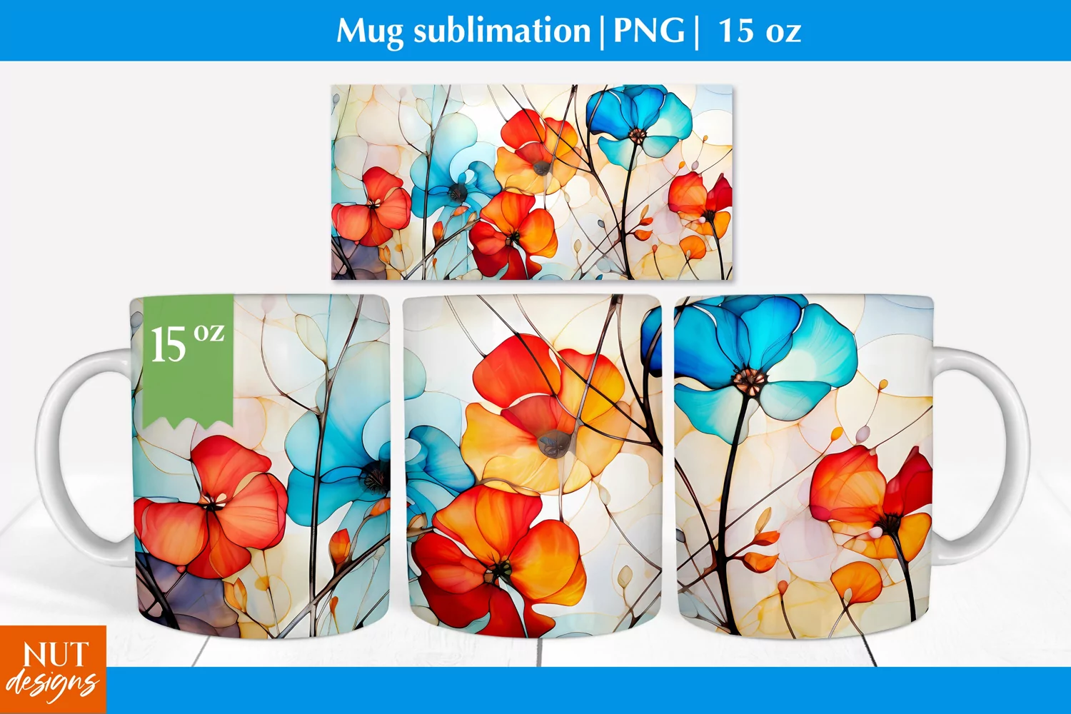 Alcohol Ink Flowers mug wrap Floral mug 15oz mug sublimation