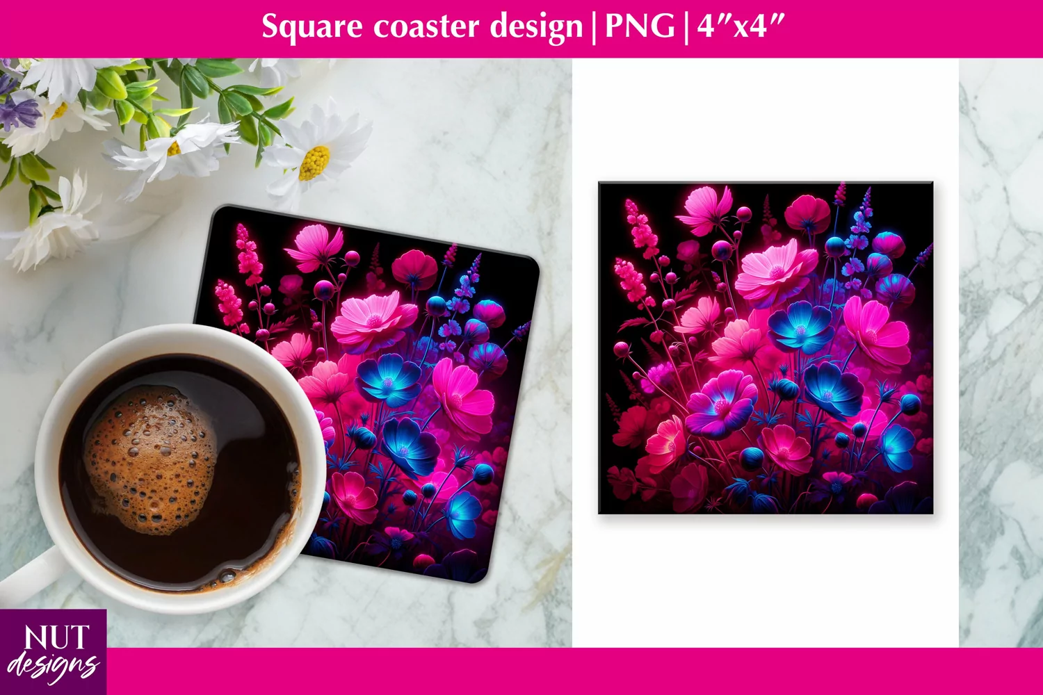 Neon flowers coaster sublimation Wildflowers square coaster example image 1