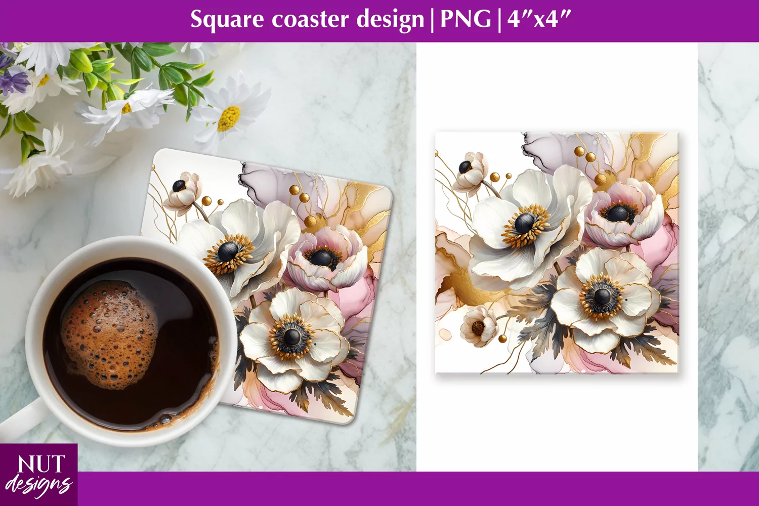 Similar Design Products to Flowers coaster with gold coaster PNG Anemone sublimation