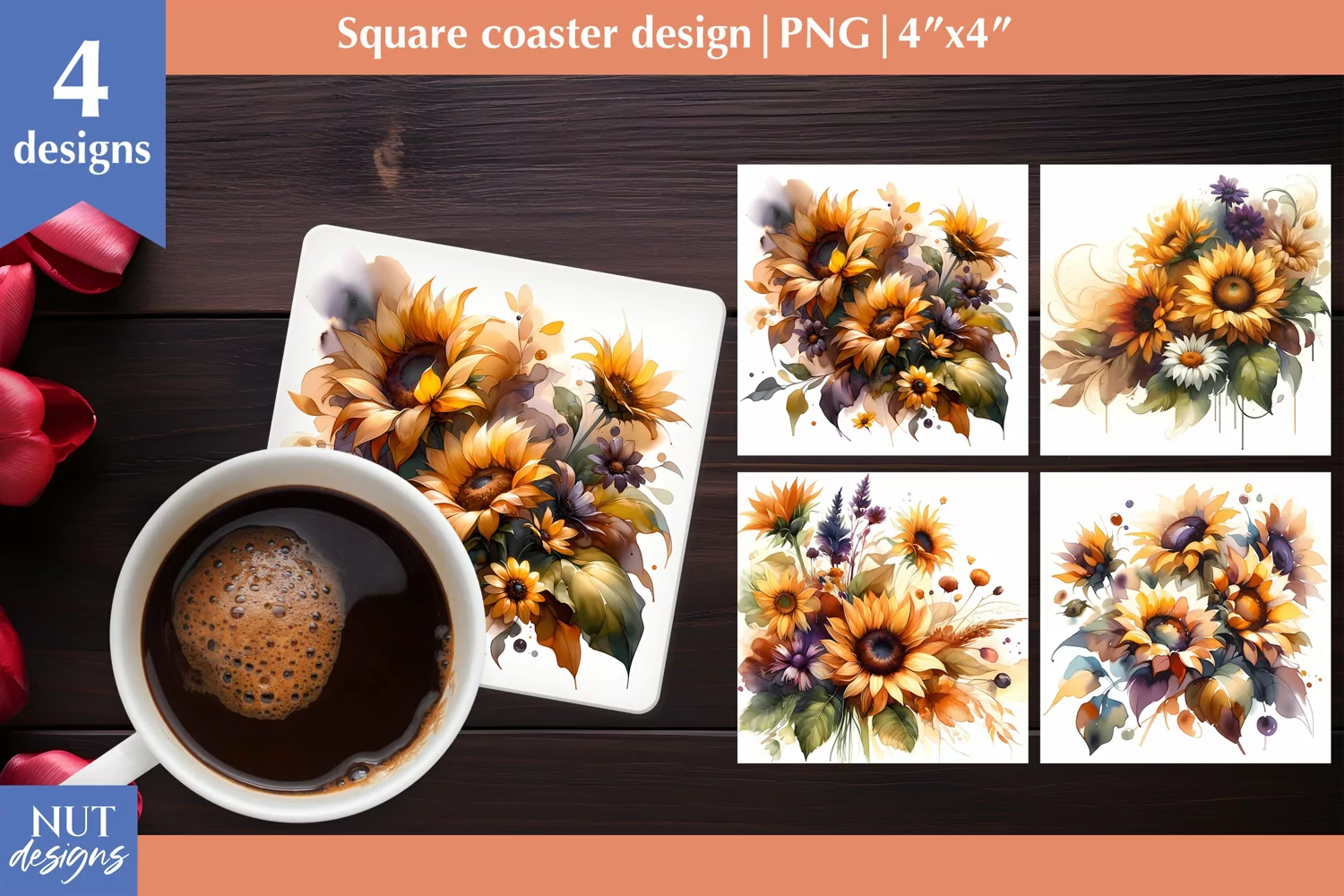 Flowers Sublimation Coaster Designs Square Coaster Coaster Sublimation Coaster Png Floral Coaster Flowers Coaster Sunflowers Sublimation Square Coaster Sublimation Sunflowers Coaster