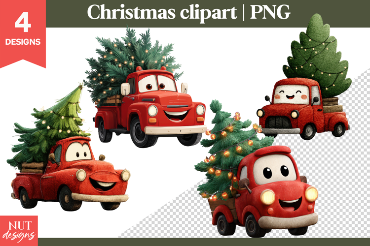 Cute Christmas clipart, red truck clipart for sublimation example image 1