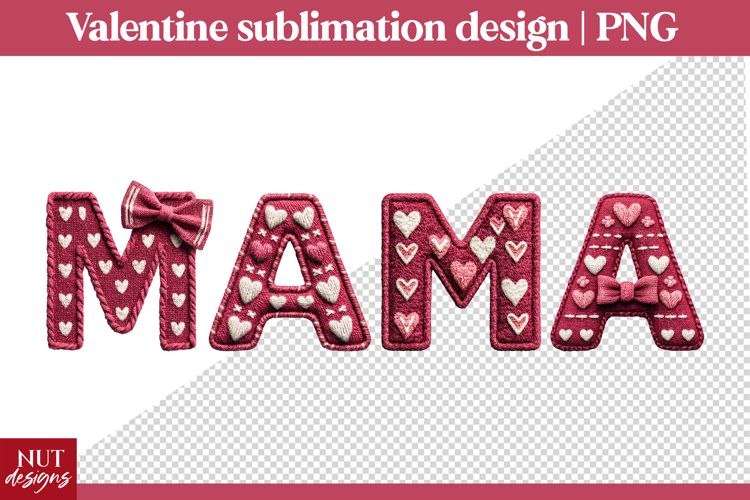 Celebrate love with this Valentine Mama sublimation PNG! Featuring stitched pink letters adorned with hearts and bows, this sweet design is perfect for shirts, gifts, and Valentine’s crafts dedicated to moms who love cute and cozy style.