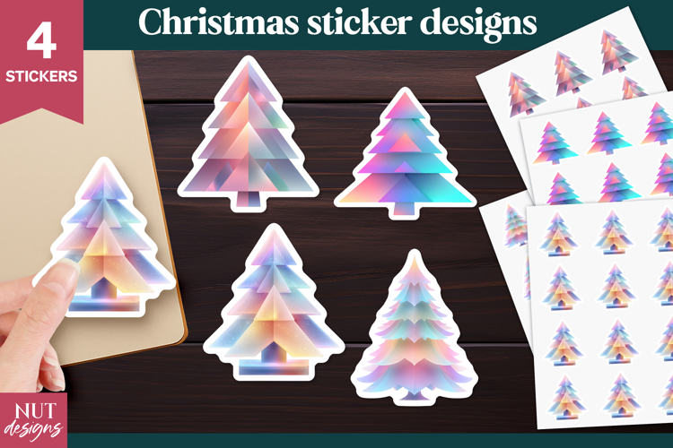 Christmas sticker Iridescent Pastel Christmas Tree Stickers example image 1