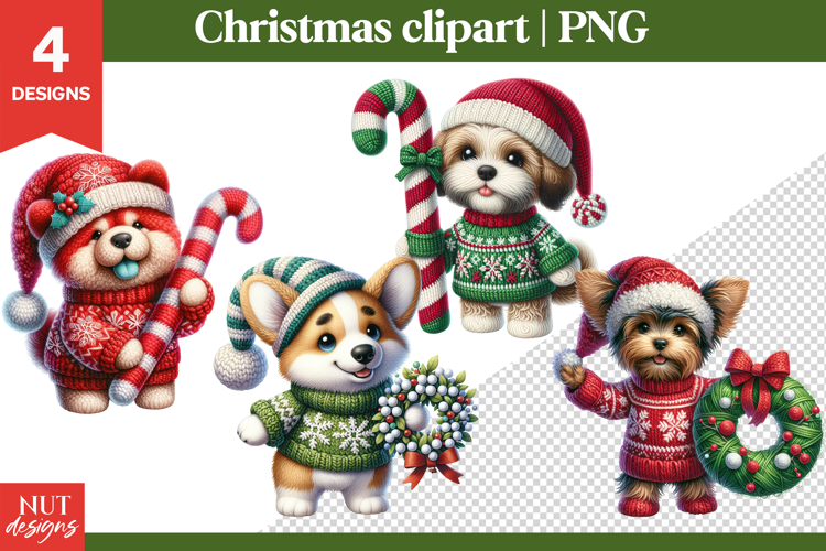 Similar Design Products to Knitted Christmas Clipart, Cute Christmas Dogs Clipart PNG