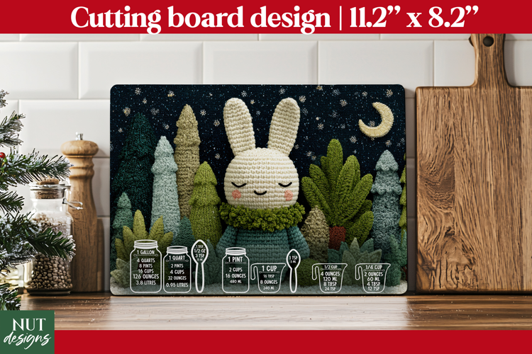 Christmas Kitchen Cutting Board Knitted Bunny Kitchen Conversion Chart Png Crochet Forest Bunny Sublimation Cute Crochet Bunny Kitchen Cutting Board Whimsical Recipe Chart Png Kawaii Bunny Kitchen Helper Bunny Measurement Chart Design Knitted Night Forest Bunny Cute Bunny Cooking Chart Holiday Bunny Kitchen Sublimation