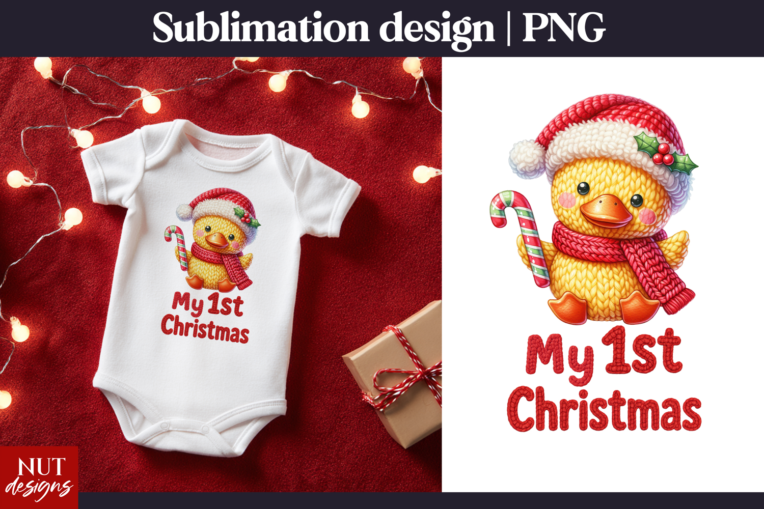 Celebrate your little one’s first holiday with this adorable crochet duck “My 1st Christmas” sublimation PNG. Perfect for baby onesies, holiday gifts, and keepsake crafts. A cozy, cute design ideal for newborns and festive baby apparel.