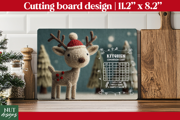 Christmas Cutting Board Sublimation Christmas Kitchen Cutting Board Whimsical Recipe Chart Png Knitted Reindeer Kitchen Chart Png Cozy Reindeer Kitchen Decor Christmas Baking Chart Holiday Cooking Helper Chart Christmas Kitchen Conversion Chart Sublimation Cute Reindeer Printable Png Cozy Christmas Baking Guide
