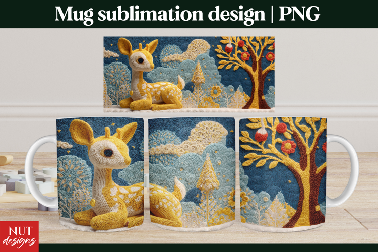 Celebrate the holidays with this adorable knitted reindeer mug wrap. Featuring a cozy pink and yellow reindeer design with festive foliage, it’s perfect for sublimation projects and adds a warm, handmade charm to any Christmas mug.