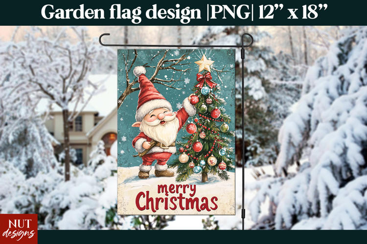 Christmas garden flag, Santa Gnome Tree Garden Flag design example image 1