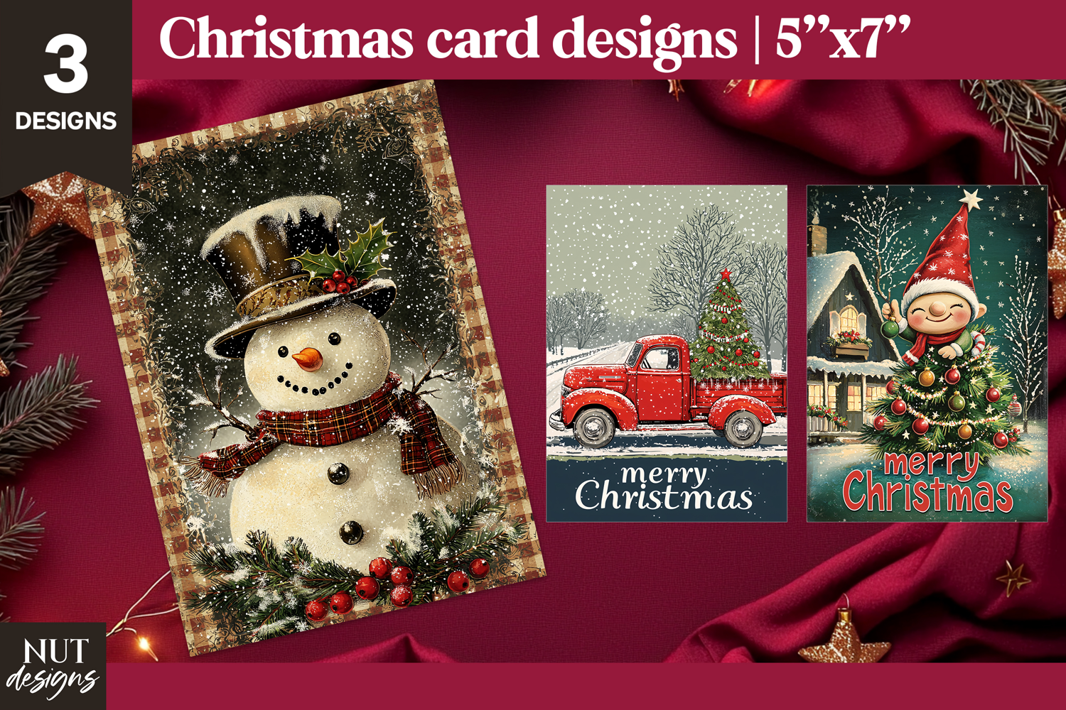 Spread holiday cheer with this Whimsical Christmas Card Pack! This 5”x7” printable set includes three charming designs: a classic snowman with a holly hat and plaid scarf, a red vintage truck carrying a Christmas tree, and a joyful gnome dressed as a tree in front of a cozy house. These festive PNG designs are perfect for digital or printed cards, DIY gifts, and winter greetings. Ideal for rustic, whimsical, and nostalgic holiday lovers.