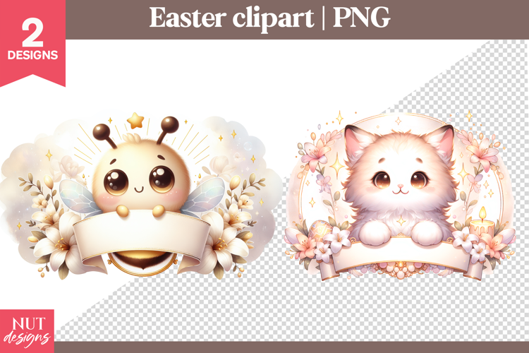 This Easter Bee & Kitten Name Tag PNG clipart set features two adorable characters—one buzzing bee and one fluffy kitten—holding elegant blank labels decorated with flowers, candles, Easter eggs, and gold accents. Perfect for creating name tags, gift labels, greeting cards, and spring-themed party decor. These pastel digital designs are editable, printable, and ideal for Easter crafting, baby showers, or church events. Add charm and sweetness to your creative projects this season.