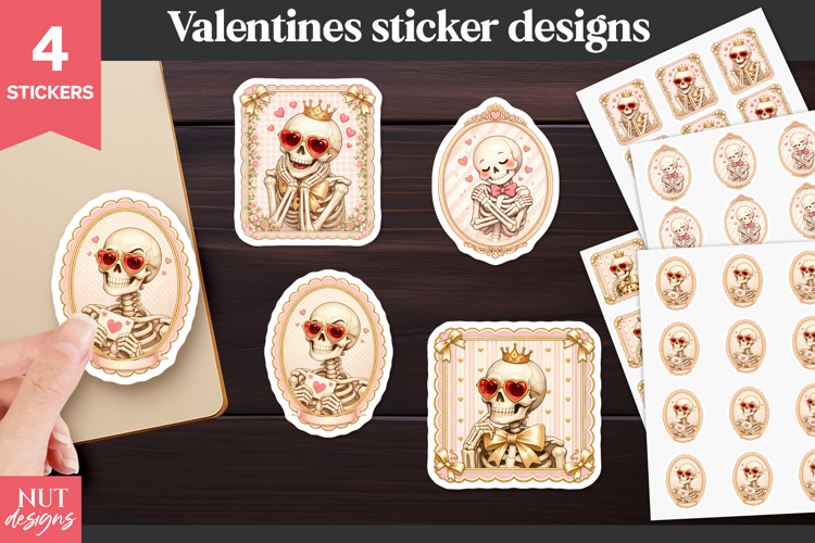Valentines Stickers Valentine Stickers Valentine Sticker Printable Valentine Sticker Sheet Stickers Valentine Day Romantic Skeleton Sticker Cute Valentine Skull Crowned Skeleton Love Skeleton Heart Eyes
