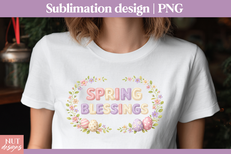 Spring Blessings sublimation Stitched letter Faux embroidery example image 1