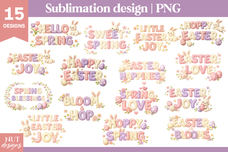 This Pastel Easter Spring PNG Bundle includes 15 adorable sublimation designs featuring stitched pastel lettering, cute bunnies, Easter eggs, blooming flowers, and cheerful messages like “Easter Joy,” “Hello Spring,” and “Bloom & Hop.” Ideal for shirts, mugs, totes, and seasonal crafts, each printable design brings soft, embroidery-style charm and festive flair. Perfect for crafters and DIY lovers wanting to celebrate spring and Easter with color, joy, and sweetness.