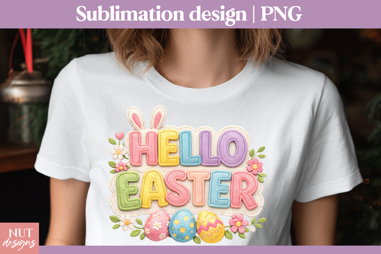 Hello Easter Bunny sublimation Stitched Easter sublimation example image 1