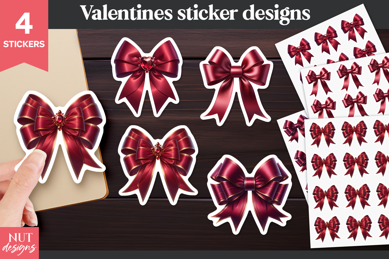 Similar Design Products to Red Valentine Bow Stickers Coquette Bows Stickers, Wedding