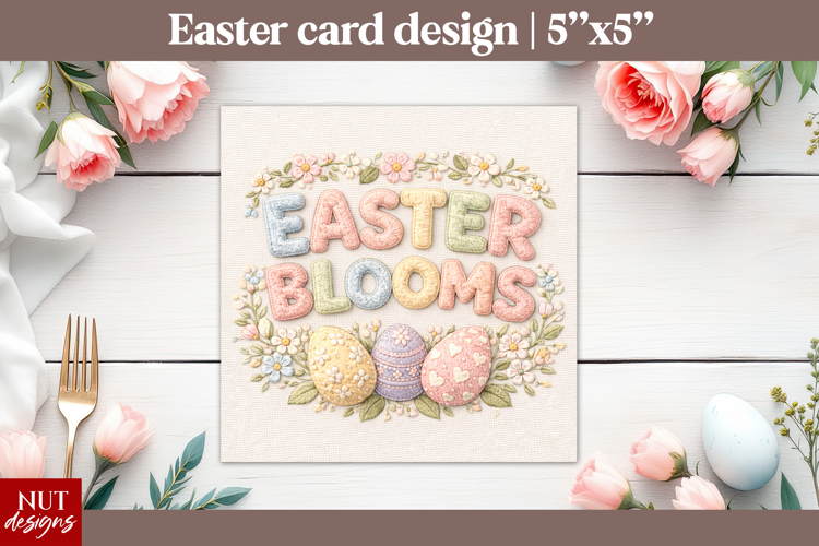 Easter Vintage Easter Retro Easter Easter Greeting Card Faux Embroidery Vintage Easter Card Easter Card Printable Embroidered Easter Design Easter Love Card Easter Blooms