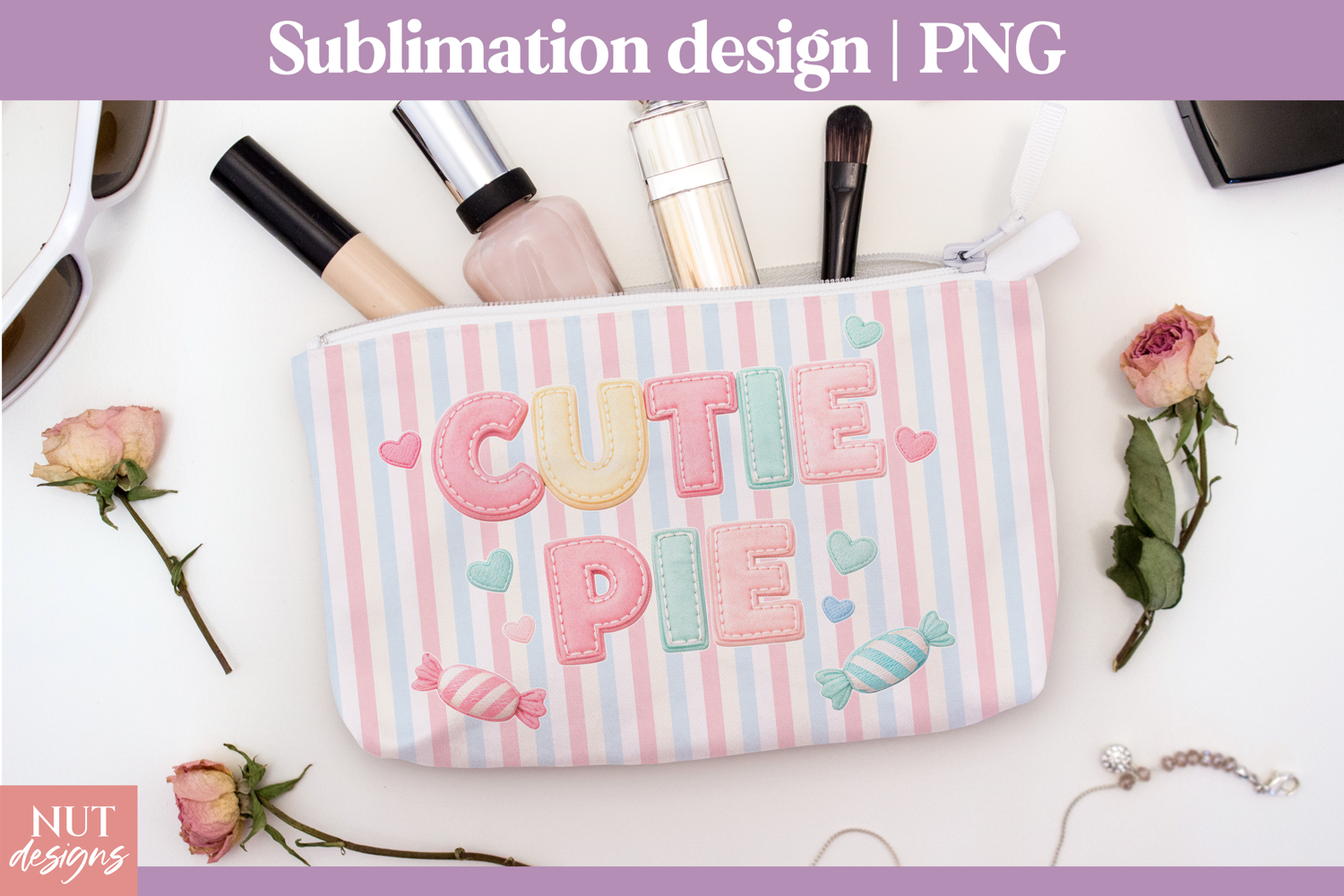 This adorable "Cutie Pie" valentine sublimation design features stitched pastel letters, hearts, and candies on a pink and blue striped background. Perfect for printing on pouches, bags, or gifts, it's ideal for romantic, girly, and sweet-themed projects. With a cute candy vibe and fun colors, this printable design adds charm to any Valentine's Day creation. Use it for zipper pouches, makeup bags, or romantic quote-themed crafts. Great for crafters who love pastel and playful designs.