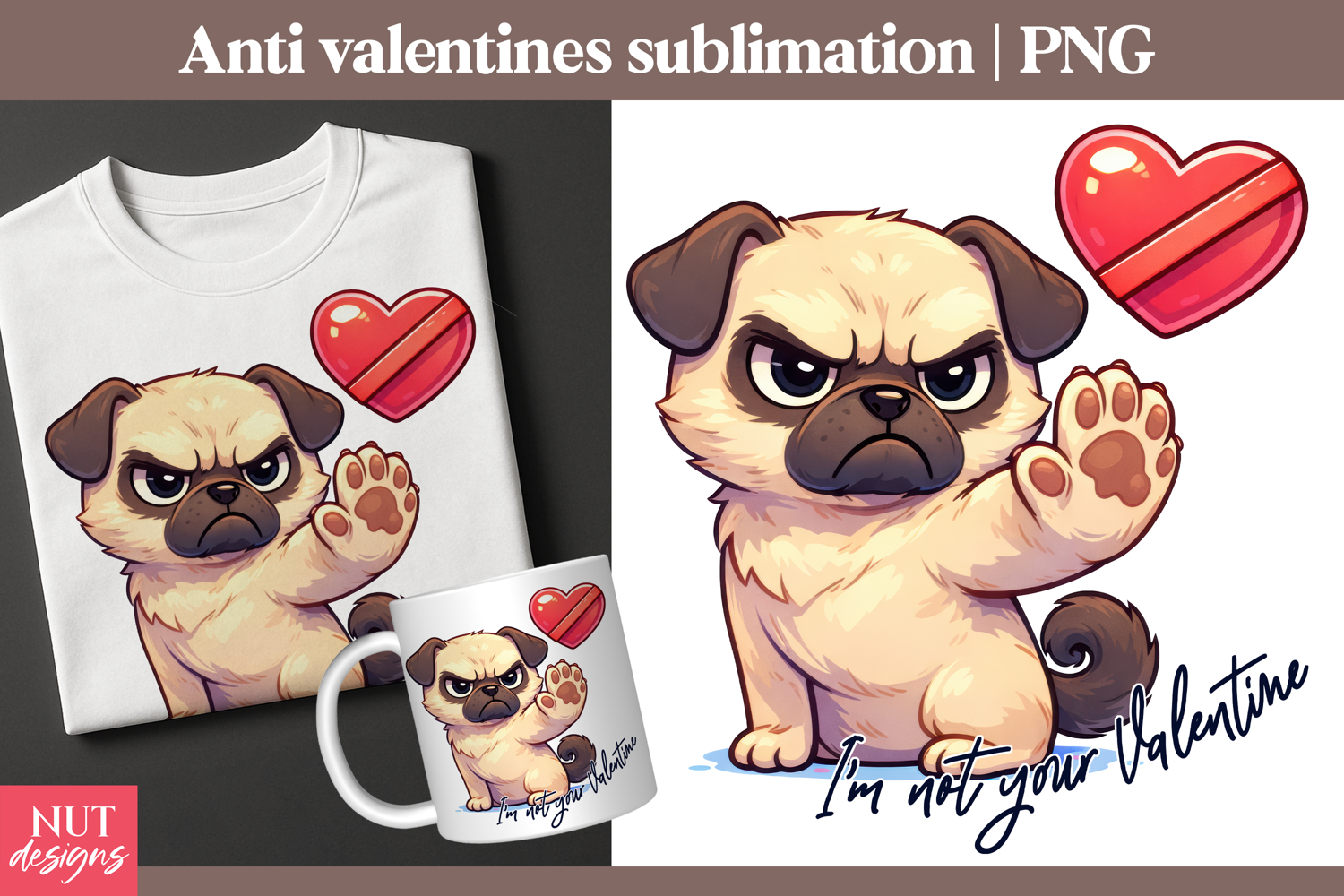 I'm Not Your Valentine Pug PNG Anti Valentine sublimation
