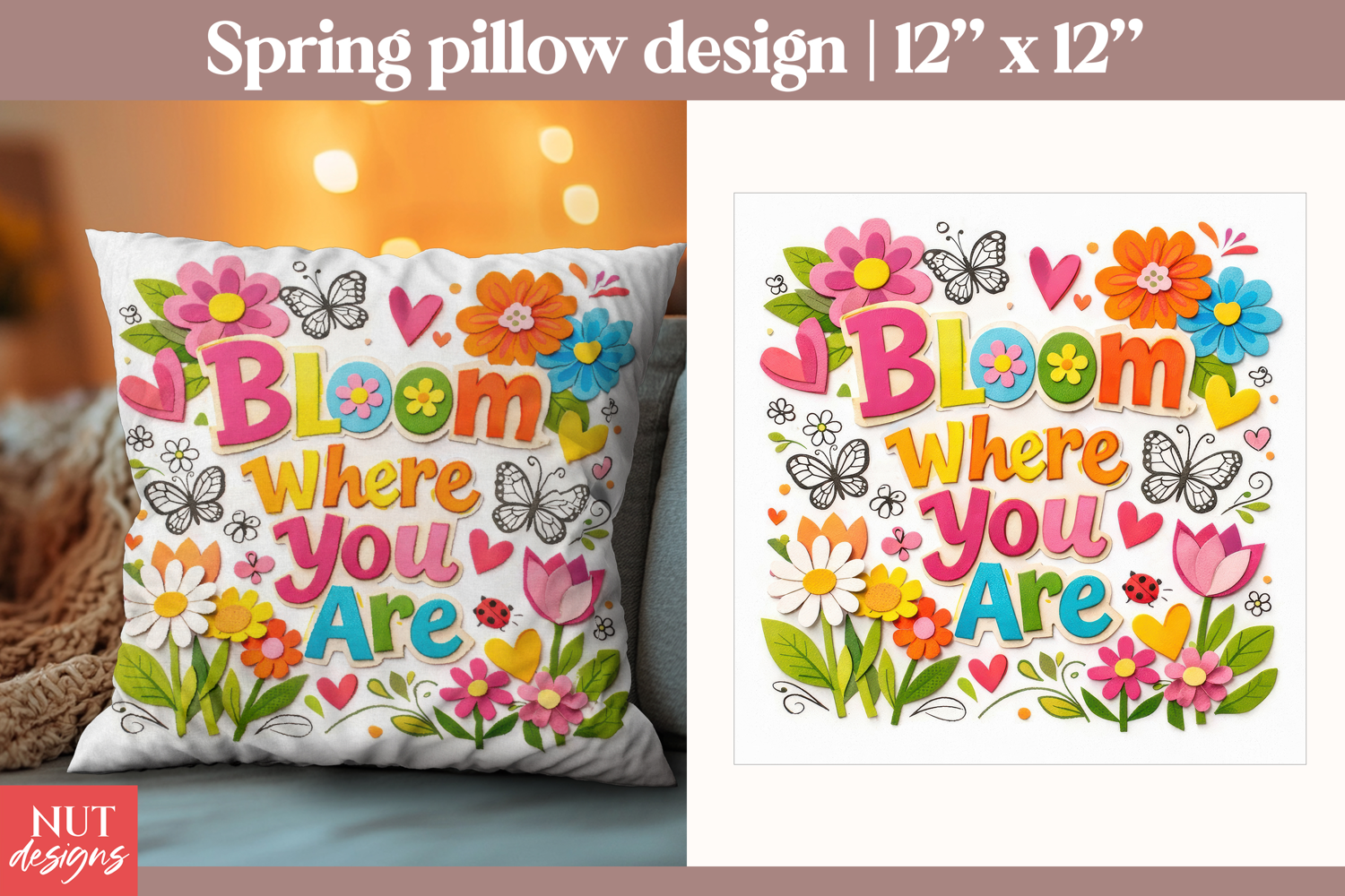 Bring spring cheer to your creations with this “Bloom Where You Are” PNG design, bursting with colorful flowers, butterflies, hearts, and a sweet ladybug. Perfect for pillows, wall art, or seasonal crafts, this joyful design features a bright, floral theme and inspiring message. Ideal for crafters who love vibrant spring decor, nature-inspired quotes, and uplifting digital art. Provided as a high-quality transparent PNG for easy sublimation and printing projects.