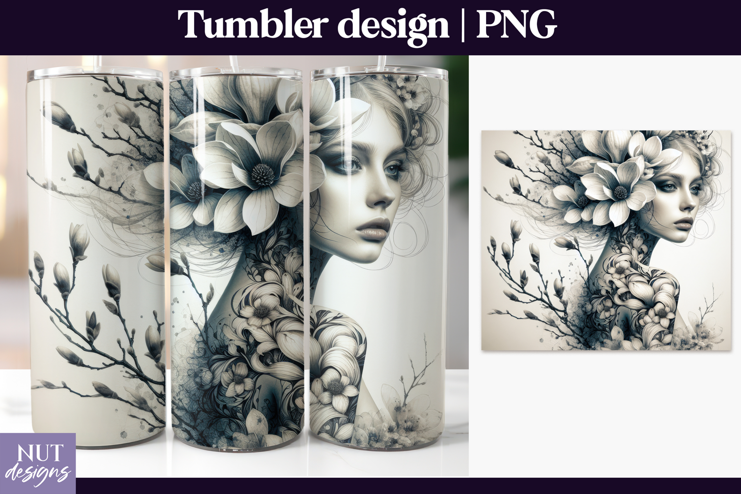 Magnolia Sublimation Tumbler Tumbler Wrap Tumbler Sublimation Tumbler 20oz Skinny Tumbler Wrap Elegant Tumbler Surreal Woman Elegant Woman Sublimation Dreamy Lady