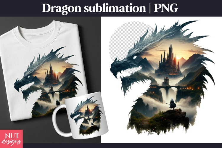 Epic Dragon Fantasy Castle Silhouette Dragon Sublimation example image 1