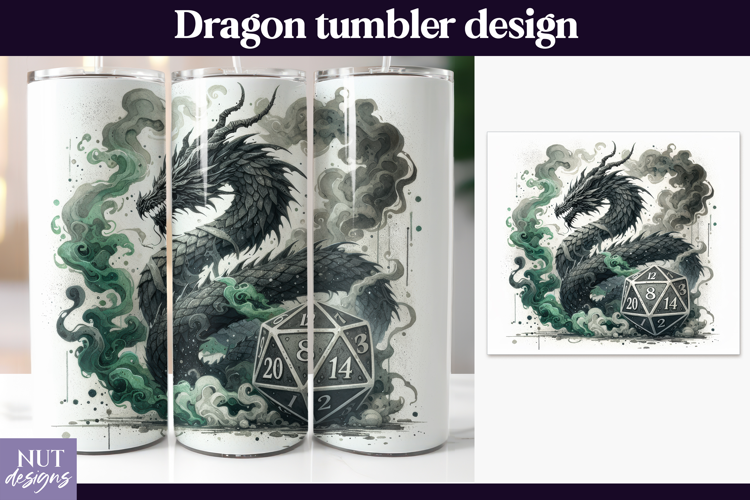 Dragon D20 Tumbler wrap DnD Dragon fantasy Tumbler 20oz example image 1