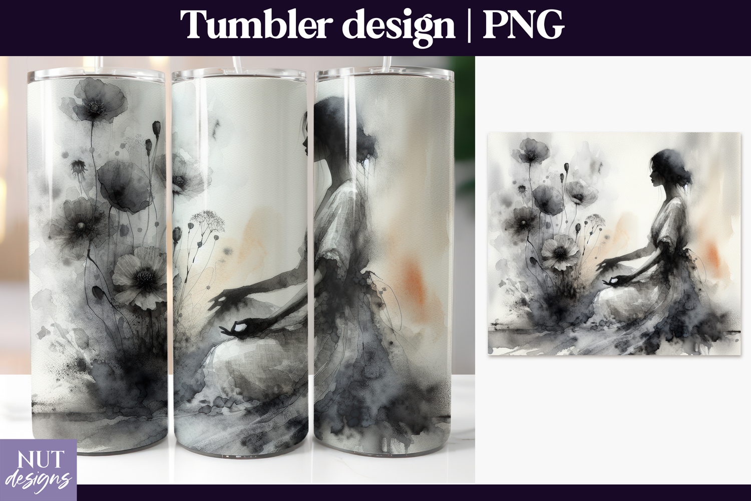 This watercolor woman floral tumbler PNG features an elegant feminine silhouette surrounded by soft botanical blooms in a delicate ink-wash style. With neutral tones and artistic watercolor textures, this high-quality PNG is perfect for sublimation on skinny tumblers, mugs, and drinkware. Ideal for modern, boho, and aesthetic tumbler designs, this artwork creates a calm, romantic look that customers love for gifts and everyday use.