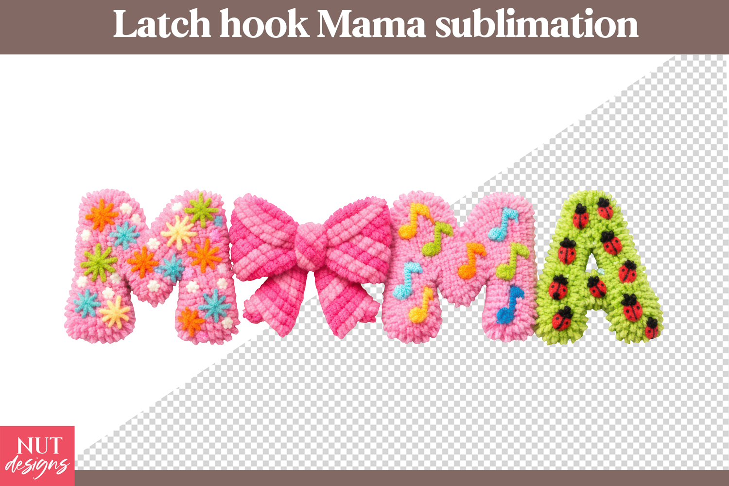 This pink bow Mama latch hook sublimation PNG features fluffy yarn-style letters with playful floral details, colorful music notes, and adorable ladybug accents. Designed with a soft textile texture and bright pink bow centerpiece, this mama design is perfect for Mother’s Day shirts, mugs, tote bags, and handmade gifts. Ideal for crafters who love cozy crochet-inspired lettering, this high-quality printable PNG adds charm, color, and personality to mom-themed projects.