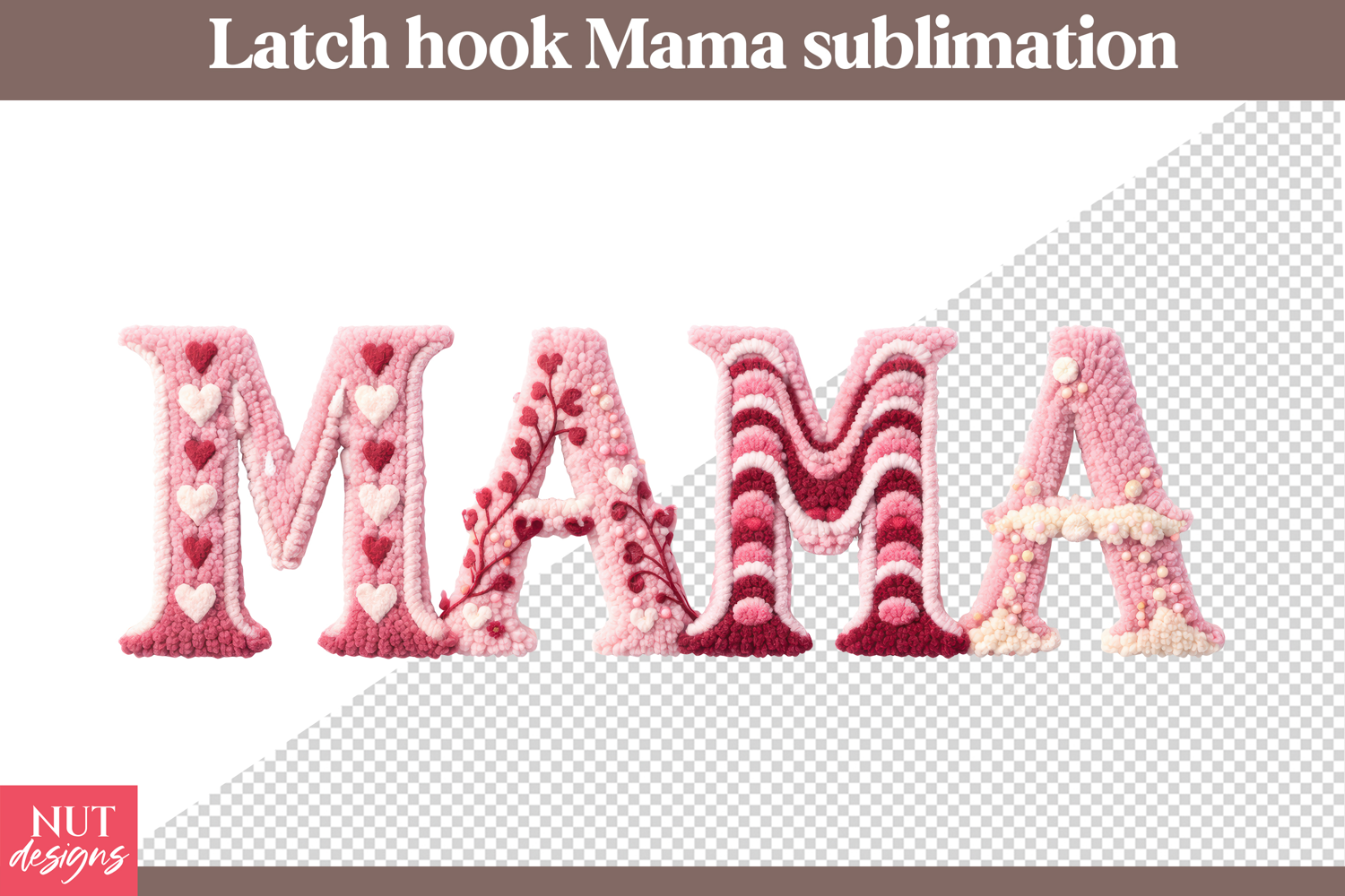 Pink Latch Hook Mama Sublimation Valentine Mama Mothers Day example image 1