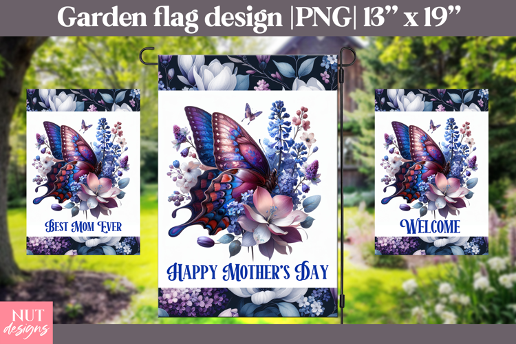 This Butterfly Garden Flag PNG features a stunning purple and blue butterfly surrounded by elegant spring flowers, perfect for Mother’s Day and seasonal outdoor decor. Designed for 13x19 garden flags, this printable sublimation file includes versatile phrases like “Happy Mother’s Day,” “Best Mom Ever,” and “Welcome.” Ideal for yard decoration, patio accents, and thoughtful mom gifts with vibrant floral charm.