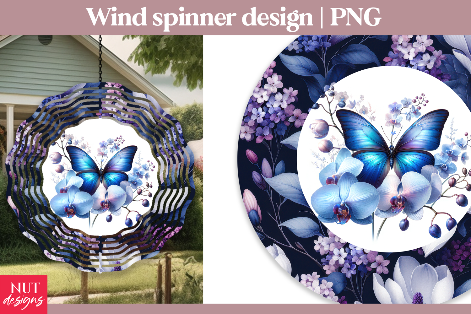 Blue Butterfly Floral WindSpinner, Spring wind spinner example image 1