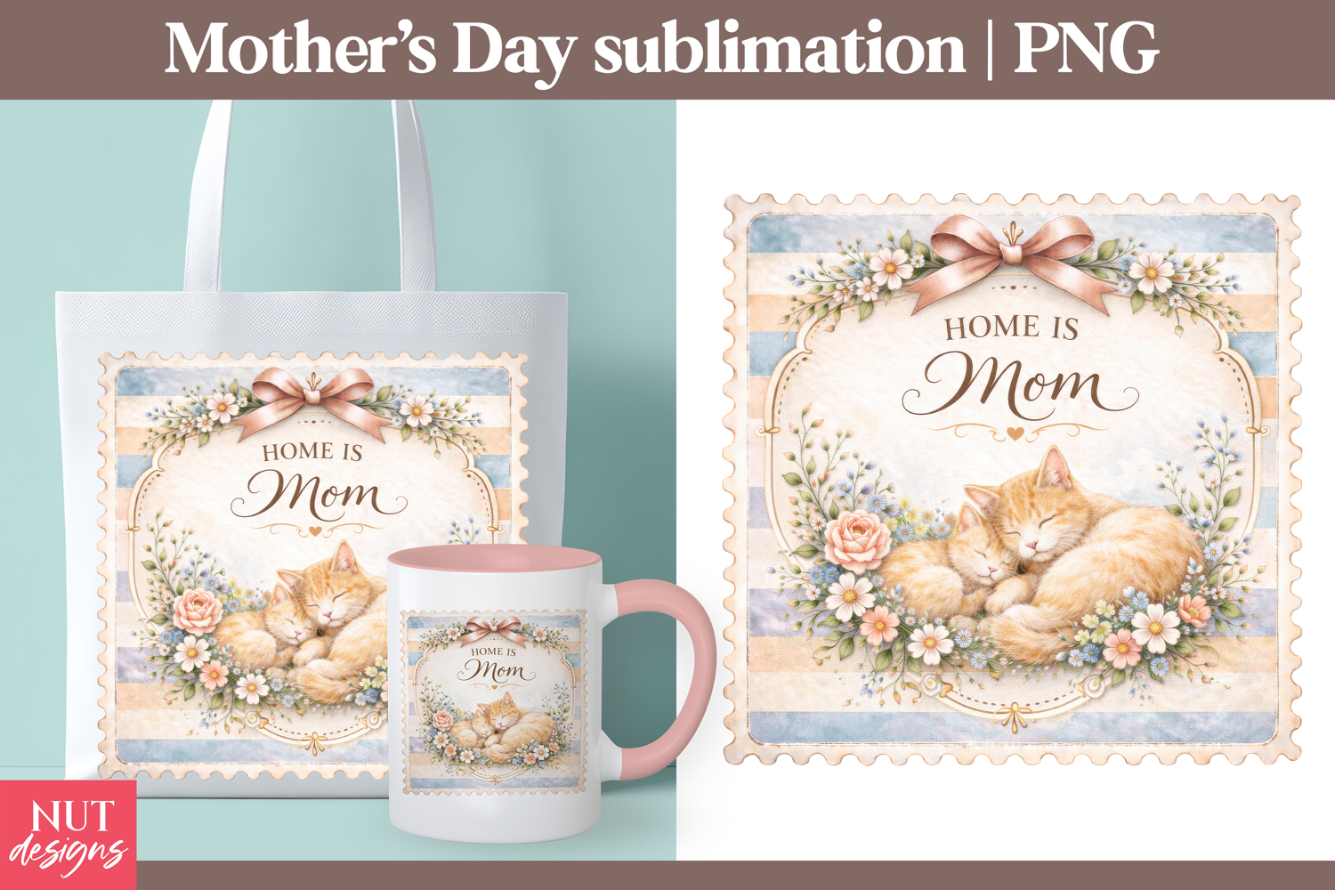 Home Is Mom Mothers Day Sublimation Cat mother and baby