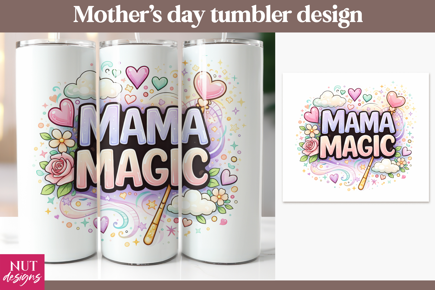 Mama Magic Tumbler sublimation, Mothers day tumbler wrap example image 1