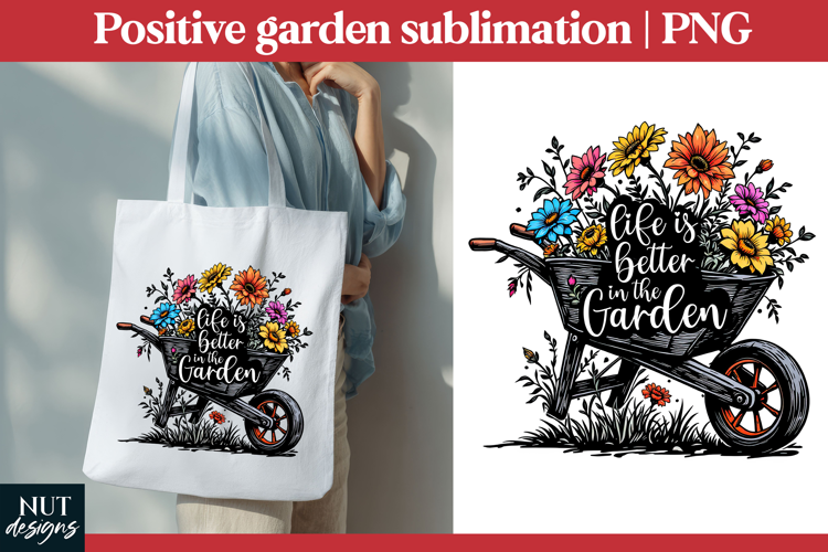 Celebrate the joy of gardening with this charming floral wheelbarrow design featuring the uplifting quote “Life is better in the garden.” Bursting with colorful flowers and rustic detail, this design is perfect for sublimation on totes, shirts, mugs, and more. Ideal for garden lovers and nature enthusiasts, it adds a warm, farmhouse-inspired touch to creative projects and thoughtful handmade gifts.