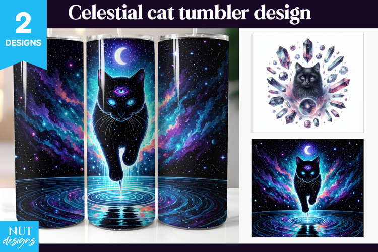 Transform your tumbler with this celestial third eye cat design featuring a mystical black cat glowing with cosmic energy. Surrounded by vibrant nebula colors, starry skies, and rippling water reflections, this artwork radiates spiritual and magical vibes. Perfect for astrology lovers, fantasy themes, and eye-catching sublimation projects, it brings a unique blend of surreal beauty and cosmic elegance to your creations.