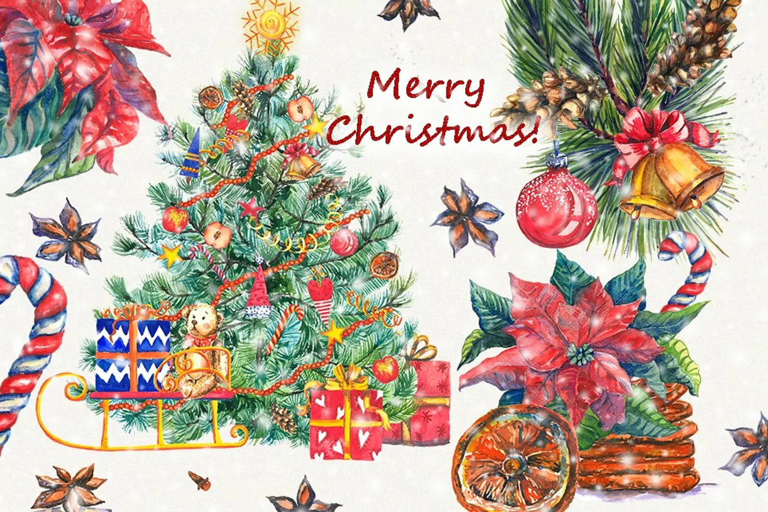 High quality hand painted Christmas Watercolor cliparts.