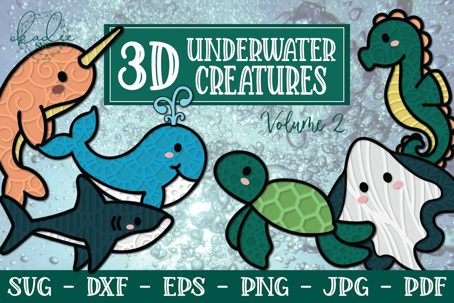 3D Underwater Creatures SVG, Sea Mandala, Turtle SVG, Whale