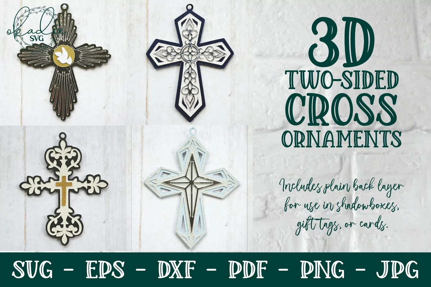 These sweet two-sided cross ornaments are beautiful as Christmas decorations, gift tags, or embellishments for cards! You will receive 4 two-sided cross ornament files as well as an instructional PDF with tips, tricks, layer order and assembly directions for each.